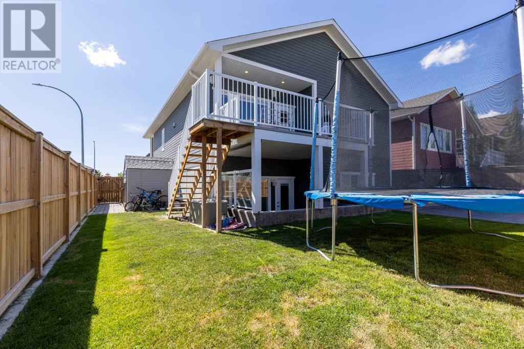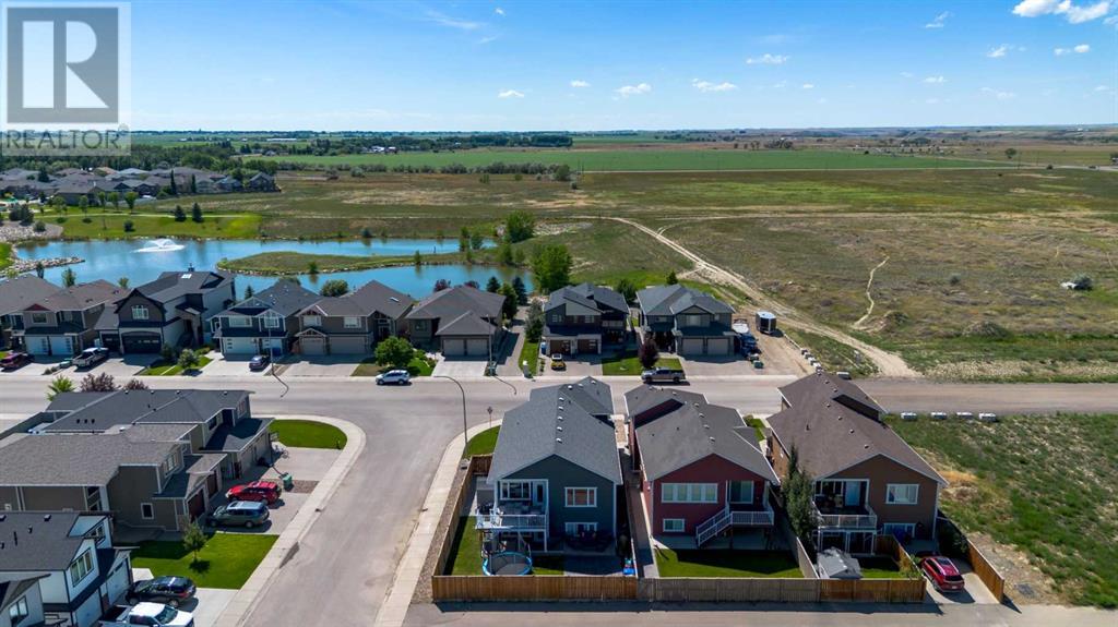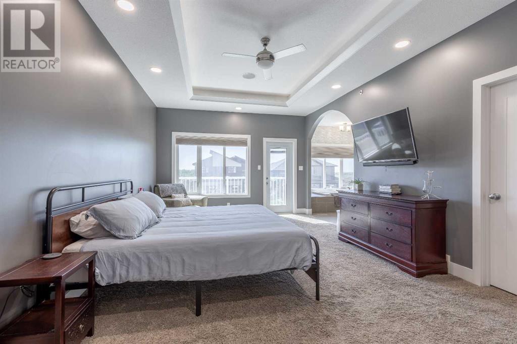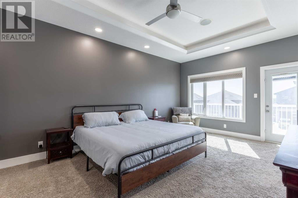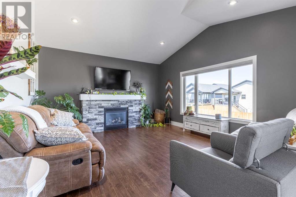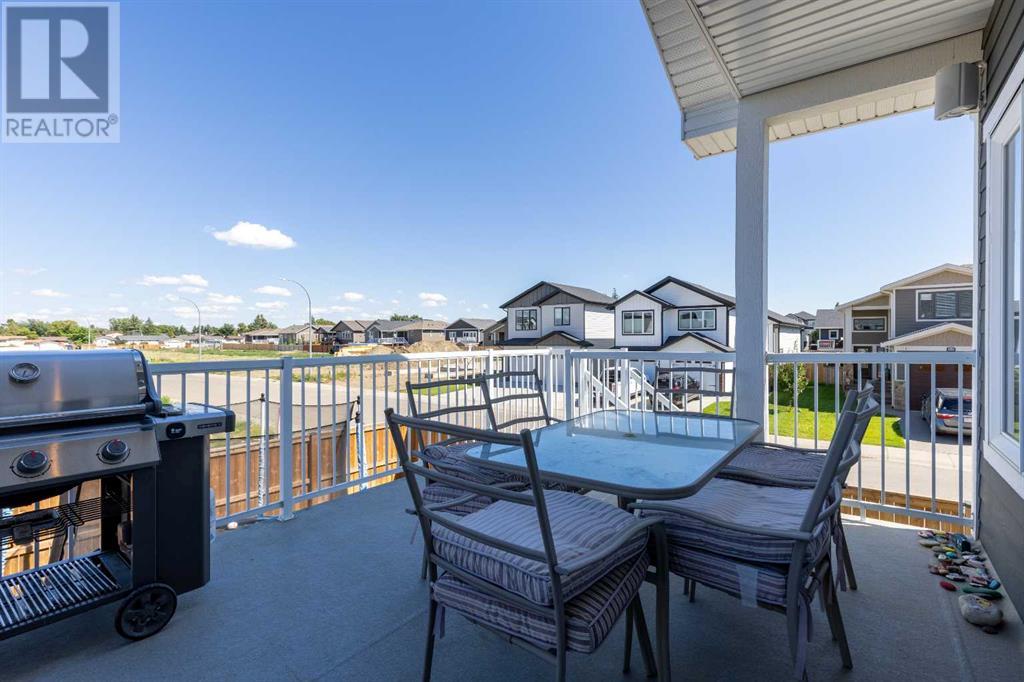 Welcome to 5401 43 Street in Taber — an exceptional family home situated on a quiet corner lot, thoughtfully designed with comfort, function, and modern elegance in mind. The exterior impresses with striking curb appeal, featuring Hardie board siding with smart trim accents, exposed aggregate concrete, PVC windows, and maintenance-free handrails. The fully fenced and professionally landscaped yard includes a stamped concrete patio that also doubles as R.V. parking, a covered lower patio ideal for a future hot tub, and a spacious back deck — the perfect place to enjoy peaceful, east-facing sunrises. A charming front porch invites you to start your mornings with a coffee in hand.Inside, the main level is bright and open, enhanced by vaulted ceilings and an airy, functional layout. The kitchen is beautifully appointed with quartz countertops, a large island with an undermount sink, updated appliances, a pantry, garburator, and tile backsplash. The adjacent dining and living spaces are warm and inviting, centered around a gas fireplace and built-in desk area, and complemented by a full-home speaker system—ideal for everyday living and entertaining. Privately situated above the garage, the spacious primary suite offers a quiet retreat. It features a tray ceiling with ambient mood lighting, access to a private balcony, an expansive walk-in closet, and a luxurious 6-piece ensuite with an extra-long soaker tub, dual vanities, and generous built-in storage. Two additional well-sized bedrooms and a stylish 4-piece bathroom complete the main floor. The fully finished basement offers 9’ ceilings, a large family room with a second gas fireplace, two more generously sized bedrooms—each with walk-in closets—a 4-piece bathroom, and a wet bar. Comfort and practicality continue with in-floor heating, air conditioning, and rough-ins for central vacuum. Additional highlights include a heated double attached garage, underground sprinklers, exposed aggregate front steps, an outdoor spea ker system, and durable asphalt shingles. Perfectly located just minutes from schools, parks, and all amenities Taber has to offer, this beautifully maintained home is an ideal choice for families seeking space, style, and functionality (id:28267)