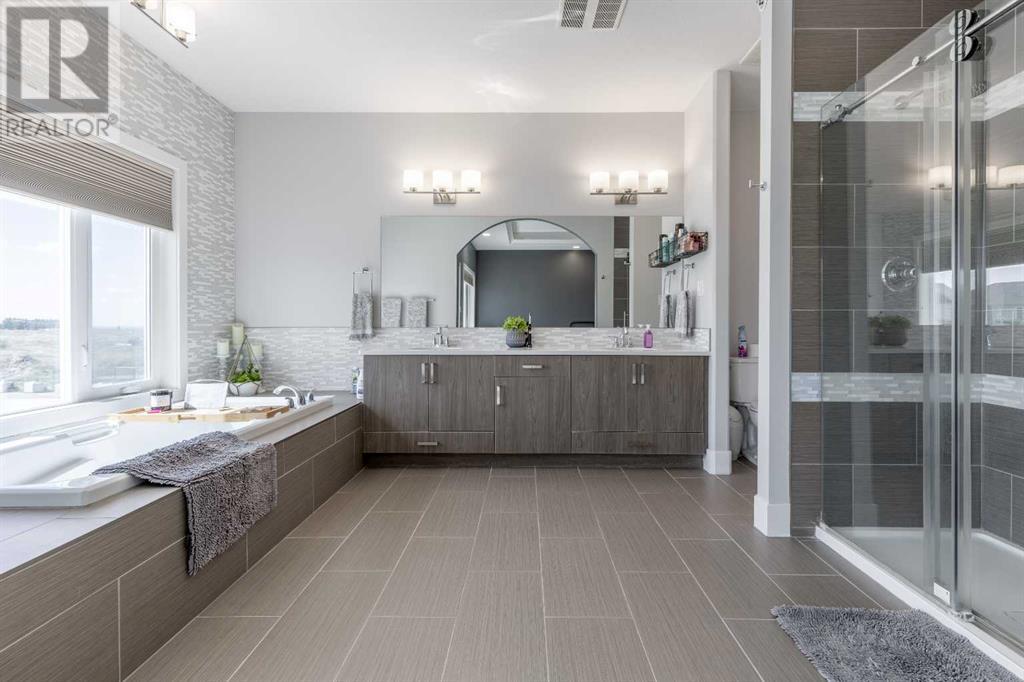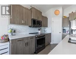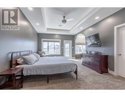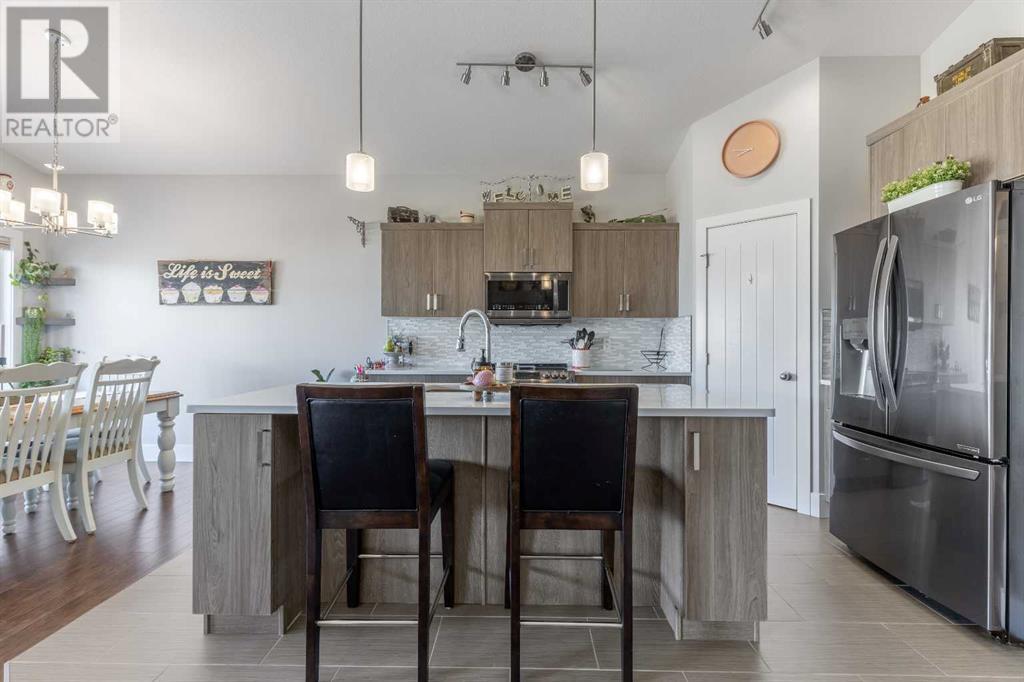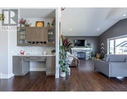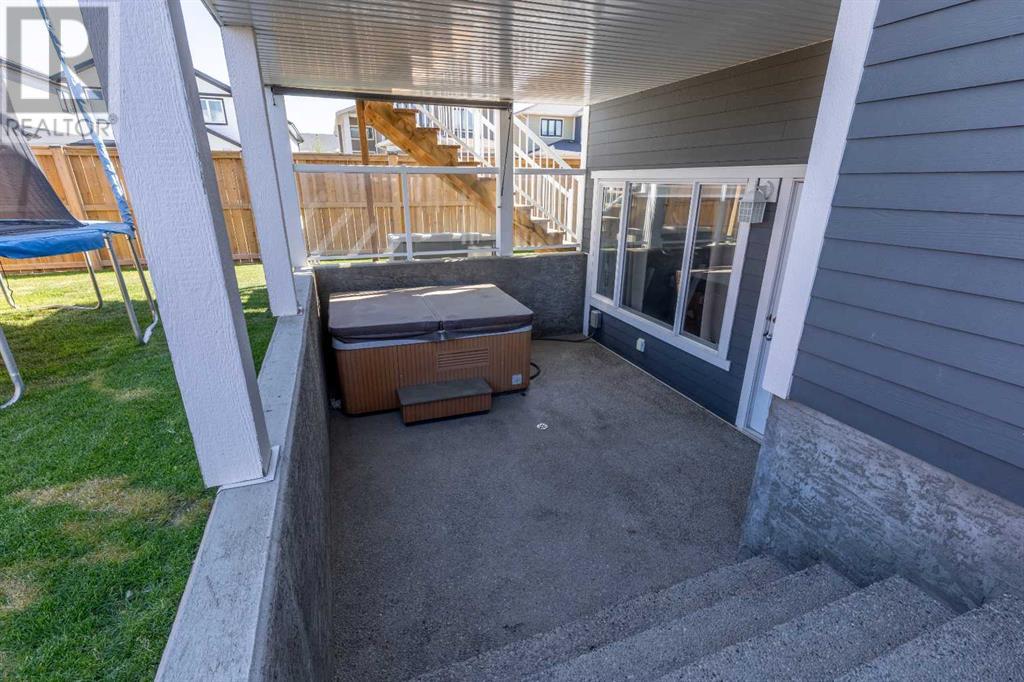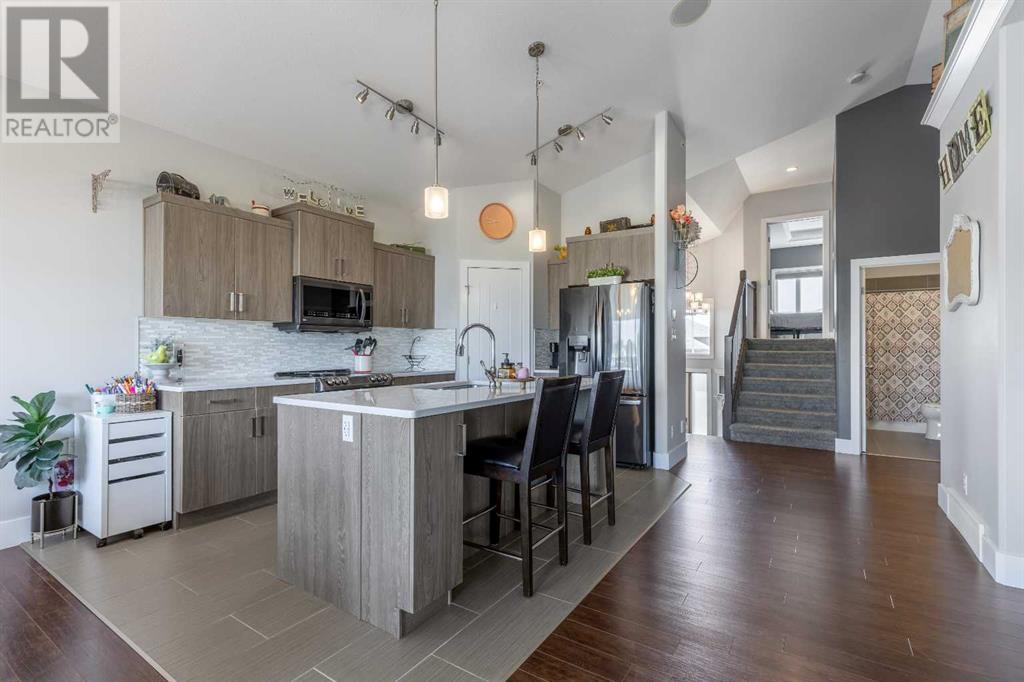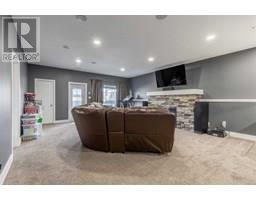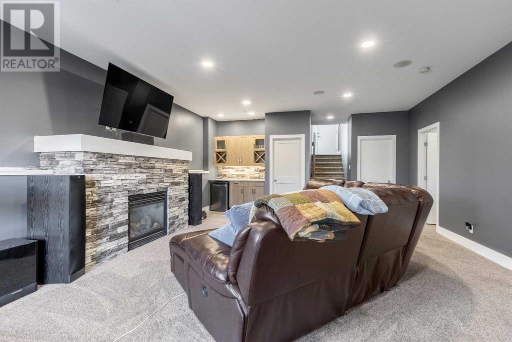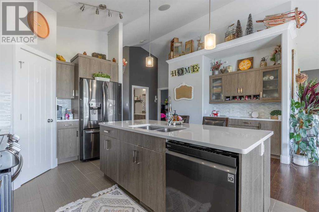 Welcome to 5401 43 Street in Taber — an exceptional family home situated on a quiet corner lot, thoughtfully designed with comfort, function, and modern elegance in mind. The exterior impresses with striking curb appeal, featuring Hardie board siding with smart trim accents, exposed aggregate concrete, PVC windows, and maintenance-free handrails. The fully fenced and professionally landscaped yard includes a stamped concrete patio that also doubles as R.V. parking, a covered lower patio ideal for a future hot tub, and a spacious back deck — the perfect place to enjoy peaceful, east-facing sunrises. A charming front porch invites you to start your mornings with a coffee in hand.Inside, the main level is bright and open, enhanced by vaulted ceilings and an airy, functional layout. The kitchen is beautifully appointed with quartz countertops, a large island with an undermount sink, updated appliances, a pantry, garburator, and tile backsplash. The adjacent dining and living spaces are warm and inviting, centered around a gas fireplace and built-in desk area, and complemented by a full-home speaker system—ideal for everyday living and entertaining. Privately situated above the garage, the spacious primary suite offers a quiet retreat. It features a tray ceiling with ambient mood lighting, access to a private balcony, an expansive walk-in closet, and a luxurious 6-piece ensuite with an extra-long soaker tub, dual vanities, and generous built-in storage. Two additional well-sized bedrooms and a stylish 4-piece bathroom complete the main floor. The fully finished basement offers 9’ ceilings, a large family room with a second gas fireplace, two more generously sized bedrooms—each with walk-in closets—a 4-piece bathroom, and a wet bar. Comfort and practicality continue with in-floor heating, air conditioning, and rough-ins for central vacuum. Additional highlights include a heated double attached garage, underground sprinklers, exposed aggregate front steps, an outdoor spea ker system, and durable asphalt shingles. Perfectly located just minutes from schools, parks, and all amenities Taber has to offer, this beautifully maintained home is an ideal choice for families seeking space, style, and functionality (id:28267)