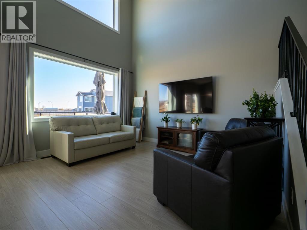 Welcome to 57 Goldenrod! Welcome to this beautiful West Lethbridge home, ideally located near shopping, the new west-side elementary school, parks, pathways, and an abundance of amenities. This property shows like new, with the added bonus of a fully finished basement and completed landscaping. The thoughtfully designed main floor features a spacious office, mudroom, pantry, and an open-concept living and dining area highlighted by soaring open-to-above ceilings. Expansive windows and patio doors flood the space with natural light and showcase views of the massive backyard, complete with a generous deck and plenty of room for outdoor activities.This level also provides access to the oversized double garage, offering 9’ overhead doors, over 12’ ceiling height, and a gas line already in place. Upstairs, the well-appointed primary suite includes a luxurious five-piece ensuite with a soaker tub, stand-alone shower, walk-in closet, and convenient access to the upper-level laundry room. Two additional bedrooms, a four-piece bathroom, and a bonus room perfect for family time complete the upper floor.The fully developed basement offers exceptional versatility, featuring a large recreation room, an additional spacious bedroom with its own ensuite, and laundry hookups. Homes of this caliber—on a lot of this size, with all finishing work already completed—are rare. This exceptional property is move-in ready and waiting for its new owners to enjoy everything it has to offer and truly call it home. Call your favourite REALTOR® today! (id:28267)