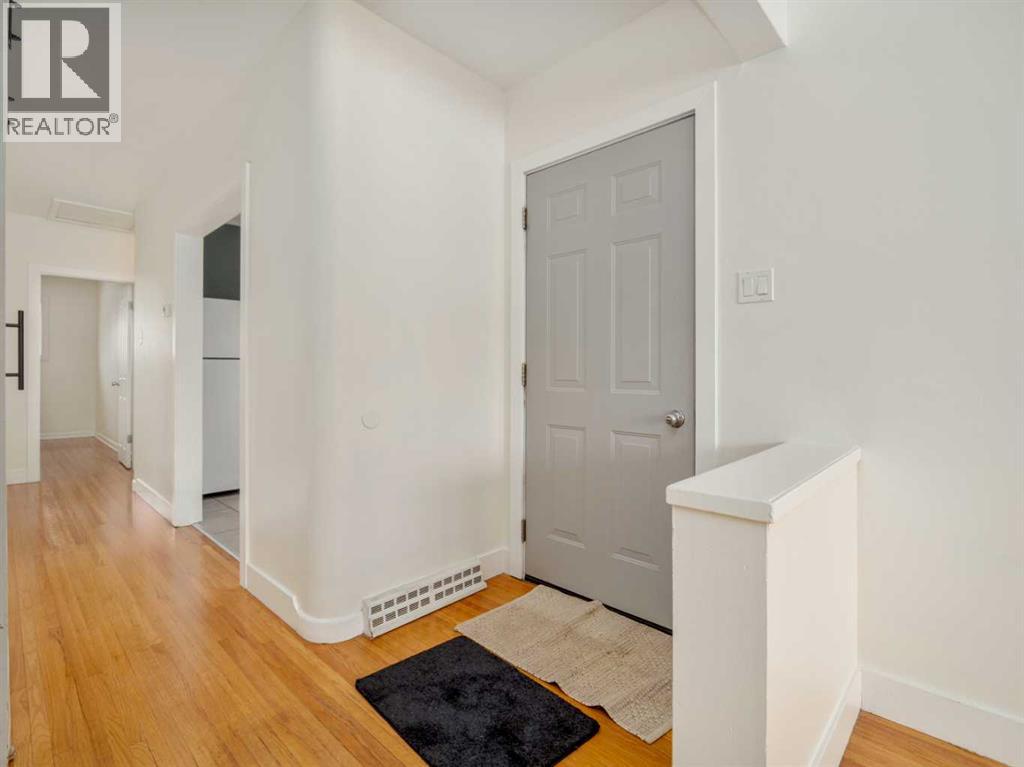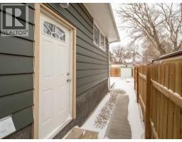 Welcome to this beautifully updated half-duplex, ideally located just north of WR Myers High School. Offering 861 square feet, this home blends comfort and modern updates. The main floor boasts two bright bedrooms, a four-piece bath, and convenient main-floor laundry with a stylish barn door. You’ll love the stunning hardwood floors throughout, and the spacious living room is flooded with natural light. The fully finished basement, offers a massive family room, an extra bedroom, and a modern three-piece bath. Outside, you’ll find a single driveway at the front, plus ample parking in the back, and a ground-level deck perfect for entertaining. All PVC windows, approximately three years old, keep the home bright and efficient. Don’t miss this fantastic opportunity to own a move-in-ready home in a prime location! (id:28267)