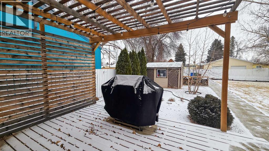 Discover this beautiful 3-bedroom, 2-bathroom bungalow nestled in the vibrant community of Taber. An excellent choice for families, this home features three spacious bedrooms on the main floor. The main floor showcases a bright and functional kitchen complete with a charming coffee bar, a comfortable dining area, and a cozy living room highlighted by a stunning navy blue feature wall that adds character and warmth. You'll also find a full 4-piece bathroom conveniently located on this level. Step downstairs to find a large family or recreation room, perfect for entertaining or relaxation, along with another bathroom that includes laundry facilities and a bonus room that could be converted to a fourth bedroom. Ample storage is available throughout the home. Outside, the expansive backyard is ideal for summer BBQs and offers plenty of space for children to play. The property sits on a generously sized lot, providing the potential to build a garage in the back if desired. Additionally, a shed offers convenient storage for your lawn and garden tools. Don't miss out on this fantastic opportunity! Contact your favorite agent to schedule a showing today. (id:28267)