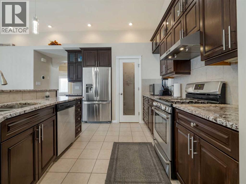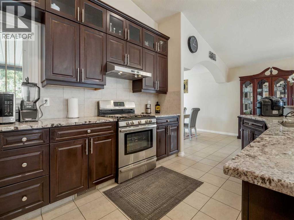 Custom built 5-level split home in South Lethbridge tucked away on a cul-de-sac that has access to walking path leading to Coulee Creek park & pond. Location is close to all big box shopping and South Side amenities, including Superstore, Costco, Home Depot, Walmart, Best Buy, Starbucks, so many restaurants, etc...Home features exterior stucco finish. Step inside the large welcoming entry. Vaulted ceilings give you a nice open view of the home. A couple steps up to the living room that features a gas fireplace and large windows for natural light. A few more steps up to the main level features a HUGE kitchen with tile floors, granite counters with raised breakfast bar, stainless steel appliances, large pantry, and a window looking out to the deck. Around the corner is a large dining room that can accommodate all the family. Garden door to the COVERED deck out back that is east facing and out of the wind! Perfect for enjoying time in the warmer months. This level also houses 2 bedrooms, a 4 piece bathroom with tub/shower combo, and a laundry room. The upper level above the garage includes the primary bedroom suite with double door entry, large walk-in closet, and newly renovated ensuite($32k in 2025) that features a walk-in tiled shower with glass doors. The lower level has a HUGE family room with gas fireplace, a MASSIVE bedroom(24x12.5) with a walk-in closet that would be perfect for a couple kids to share(or for the in-laws). There is also a 4 piece bath with tub/shower combo.. Down another level to the basement you'll find another good size bedroom and access to the utility room. Home has conveniences of tankless hot water, central vac, & central air. Heated 23x28 double garage for your vehicles. Yard is fenced with turf and rock landscaping for low maintenance. Move in and enjoy! (id:28267)