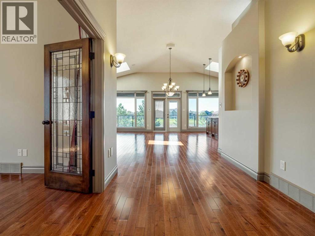 Elegant, charming, and beautifully bright—this custom-built 5-bedroom luxury home in Southgate offers exceptional comfort and unforgettable style. Nestled between a pond out front and a pond out back, this property delivers rare natural beauty and a serene backdrop from every room. Step inside to discover a thoughtfully designed interior featuring hardwood floors, tile, plush carpeting, and rich custom finishes. The gourmet kitchen shines with granite countertops, stainless steel appliances, and an induction cooktop—ideal for both everyday meals and entertaining. The main floor features an open-concept kitchen, dining, and living room, along with two bedrooms, a 4-piece bathroom, and a conveniently located laundry room. The private primary suite is set on its own level, offering added tranquility and featuring a personal deck, perfect for morning coffee or peaceful evening views. This home boasts three fireplaces, including a striking double-sided fireplace in the expansive 5-piece ensuite, creating a true spa-like escape. Enjoy multiple outdoor living spaces with a covered patio on the main level and direct access to another covered patio from the walkout basement. Downstairs, a spacious family room with a wet bar and two additional bedrooms offers the perfect setting for gatherings, movie nights, or hosting guests. Energy-efficient solar panels add exceptional value and long-term savings, enhancing both comfort and sustainability. Located close to walking paths, parks, restaurants, and shopping, this home blends luxury, convenience, and lifestyle with effortless ease. A true standout in Southgate—crafted for those who appreciate elegance and designed for those who love to live well. Don’t miss the opportunity to make it yours. Contact your favourite agent today to book a showing. (id:28267)