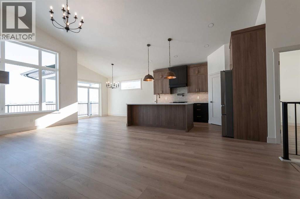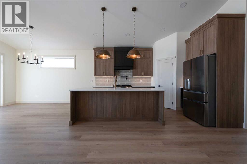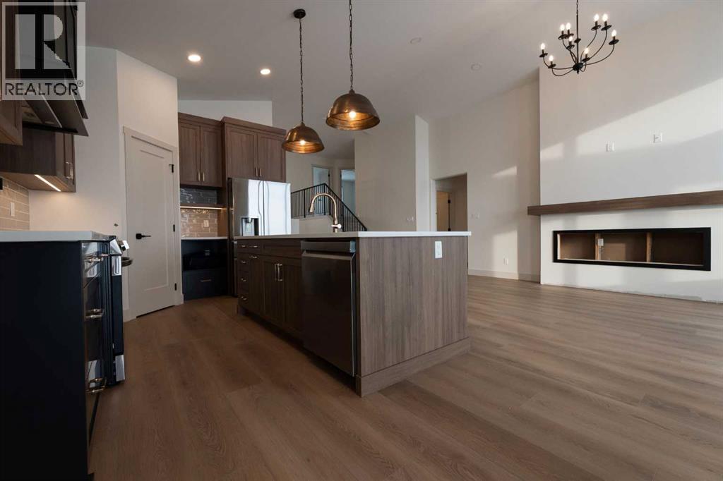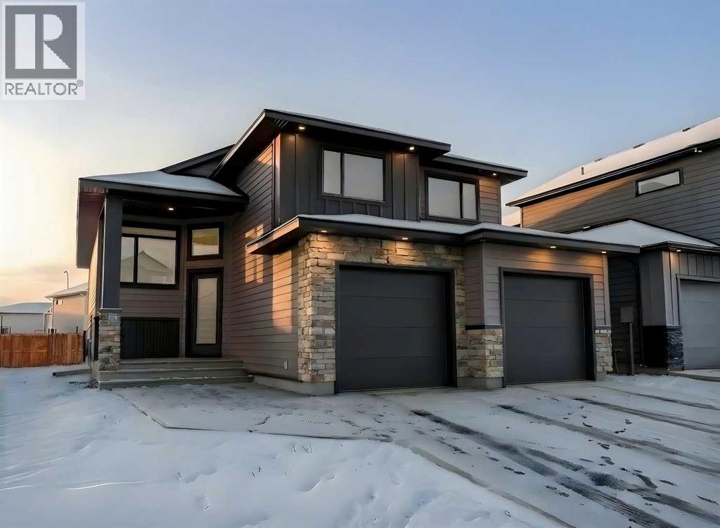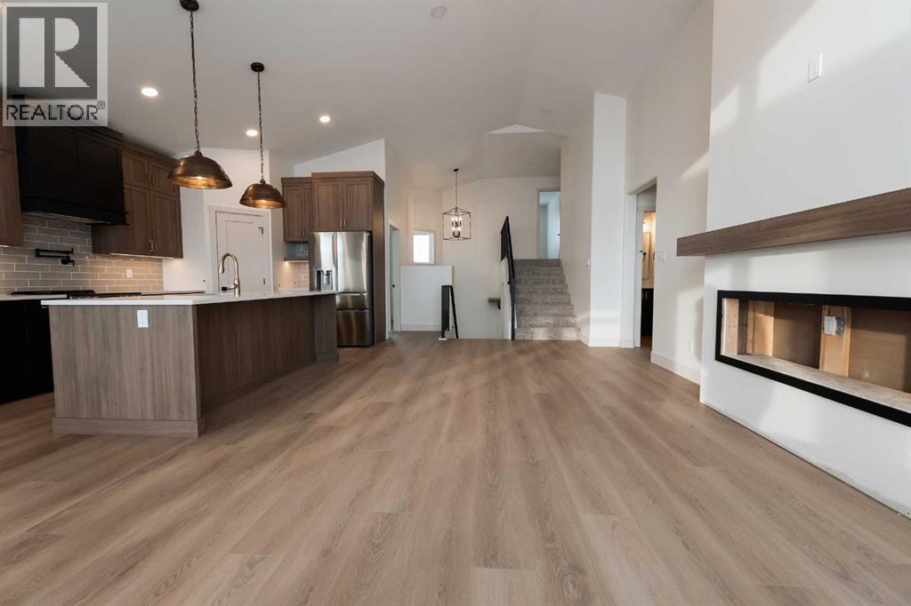 Introducing 639 Sixmile Crescent... Offering 1,904 sq. ft. of modern living space, this home blends clean architectural lines with warm, timeless finishes across five bedrooms, 3.5 bathrooms, and a double attached garage.From the moment you enter, the home makes a strong first impression. The open foyer and stairwell are anchored by soaring ceilings, expansive windows, and statement lighting that fills the space with natural light and a sense of scale. Wide-plank flooring flows seamlessly throughout the main level, reinforcing the home’s cohesive, modern aesthetic.The main living area is open, airy, and designed for everyday comfort. Large windows frame the living room, while the fireplace adds a refined focal point without overpowering the space—perfect for both quiet evenings and entertaining.At the heart of the home, the kitchen is as functional as it is stylish. Rich cabinetry, a large central island with seating, modern pendant lighting, and clean tile backsplash details create a space designed for gathering. The layout flows effortlessly into the dining area, making hosting feel natural and intuitive.Also on the main level is a dedicated office, ideal for remote work or study, along with a spacious primary bedroom retreat. The primary suite features a walk-in closet and a spa-inspired 5-piece ensuite, complete with a tiled soaker tub, glass shower, and sleek, modern fixtures—designed to feel calm, private, and intentional.Upstairs, two additional bedrooms and a four-piece bathroom provide comfortable accommodations for family or guests. The thoughtful layout keeps bedrooms well-separated while maintaining a connected feel.The fully developed basement expands the living space even further, offering a large rec room, two additional bedrooms with walk-in closets, a four-piece bathroom, and ample storage—ideal for guests, teenagers, or flexible lifestyle needs.With direct garage access through the foyer, a conveniently placed laundry area, and a l ayout designed for both form and function, this home delivers modern living without compromise.Discover the lifestyle that 639 Sixmile Crescent has to offer—brand new, beautifully finished, and ready to welcome you home. (id:28267)