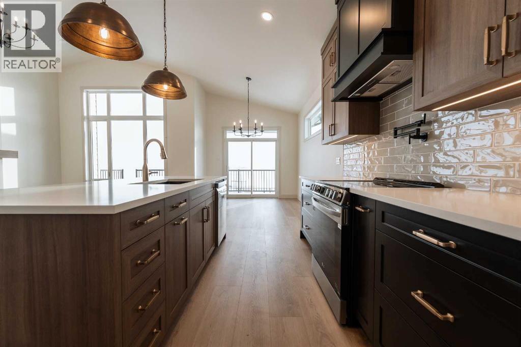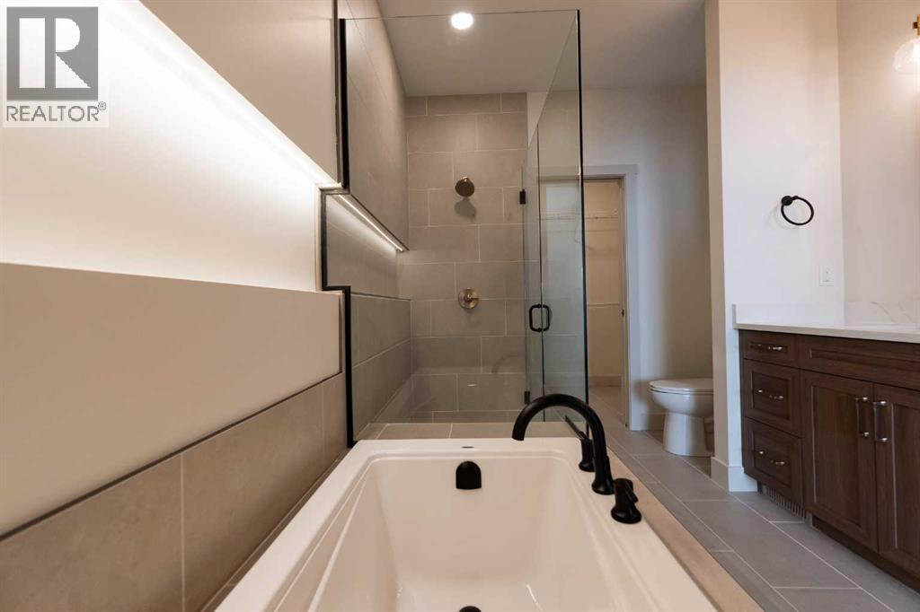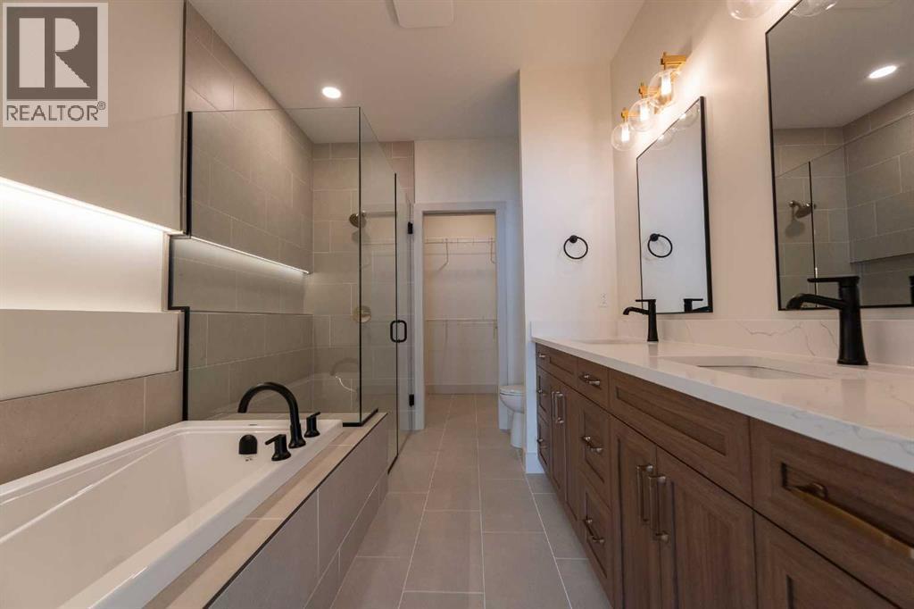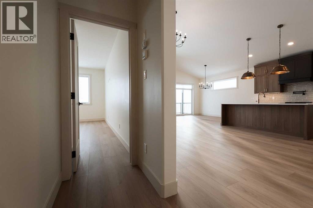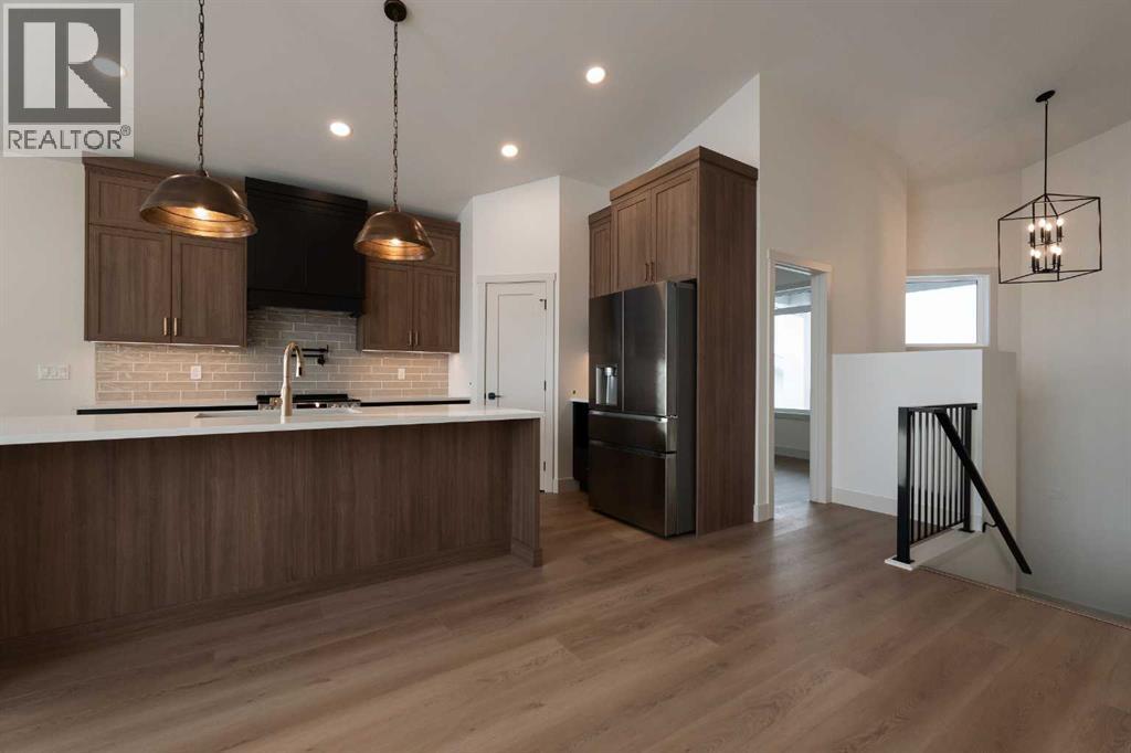 Introducing 639 Sixmile Crescent... Offering 1,904 sq. ft. of modern living space, this home blends clean architectural lines with warm, timeless finishes across five bedrooms, 3.5 bathrooms, and a double attached garage.From the moment you enter, the home makes a strong first impression. The open foyer and stairwell are anchored by soaring ceilings, expansive windows, and statement lighting that fills the space with natural light and a sense of scale. Wide-plank flooring flows seamlessly throughout the main level, reinforcing the home’s cohesive, modern aesthetic.The main living area is open, airy, and designed for everyday comfort. Large windows frame the living room, while the fireplace adds a refined focal point without overpowering the space—perfect for both quiet evenings and entertaining.At the heart of the home, the kitchen is as functional as it is stylish. Rich cabinetry, a large central island with seating, modern pendant lighting, and clean tile backsplash details create a space designed for gathering. The layout flows effortlessly into the dining area, making hosting feel natural and intuitive.Also on the main level is a dedicated office, ideal for remote work or study, along with a spacious primary bedroom retreat. The primary suite features a walk-in closet and a spa-inspired 5-piece ensuite, complete with a tiled soaker tub, glass shower, and sleek, modern fixtures—designed to feel calm, private, and intentional.Upstairs, two additional bedrooms and a four-piece bathroom provide comfortable accommodations for family or guests. The thoughtful layout keeps bedrooms well-separated while maintaining a connected feel.The fully developed basement expands the living space even further, offering a large rec room, two additional bedrooms with walk-in closets, a four-piece bathroom, and ample storage—ideal for guests, teenagers, or flexible lifestyle needs.With direct garage access through the foyer, a conveniently placed laundry area, and a l ayout designed for both form and function, this home delivers modern living without compromise.Discover the lifestyle that 639 Sixmile Crescent has to offer—brand new, beautifully finished, and ready to welcome you home. (id:28267)
