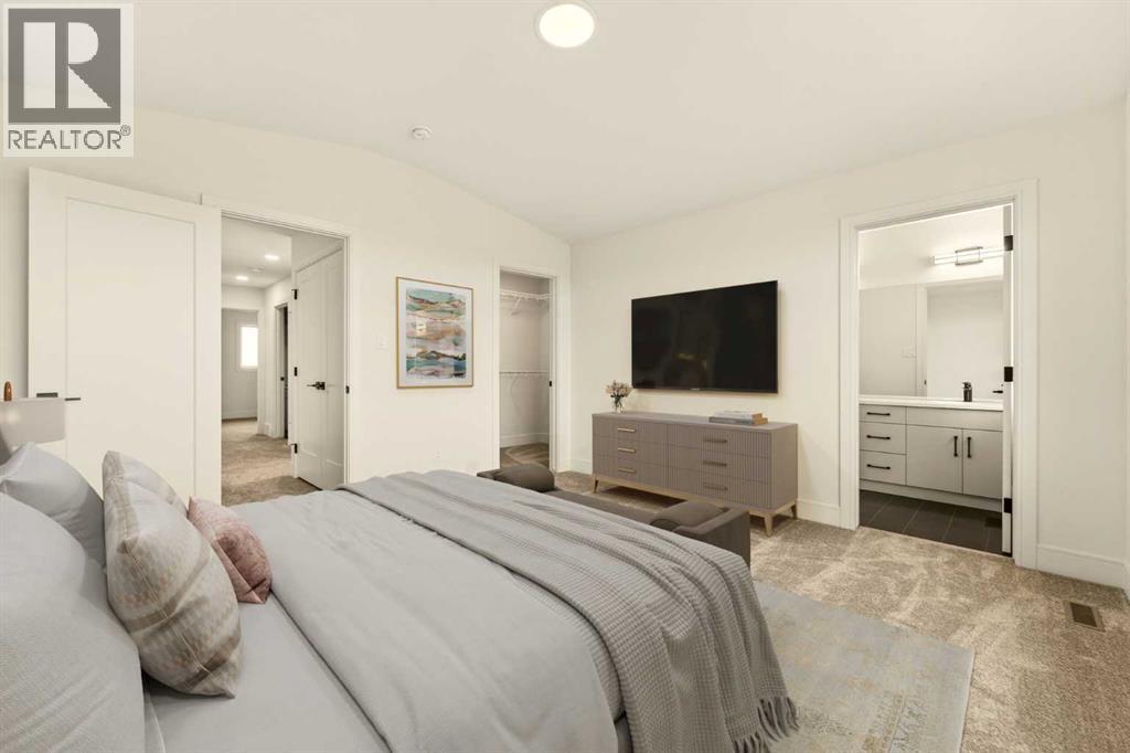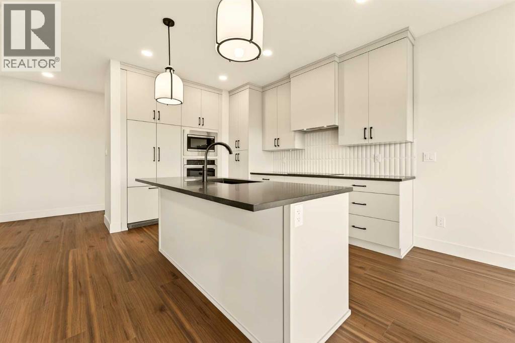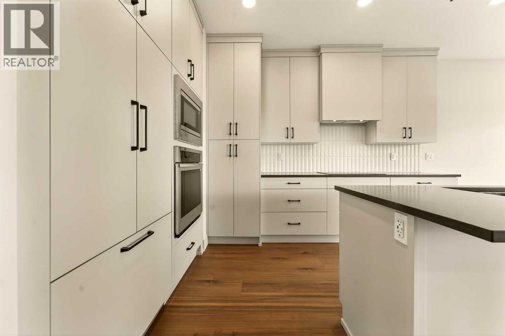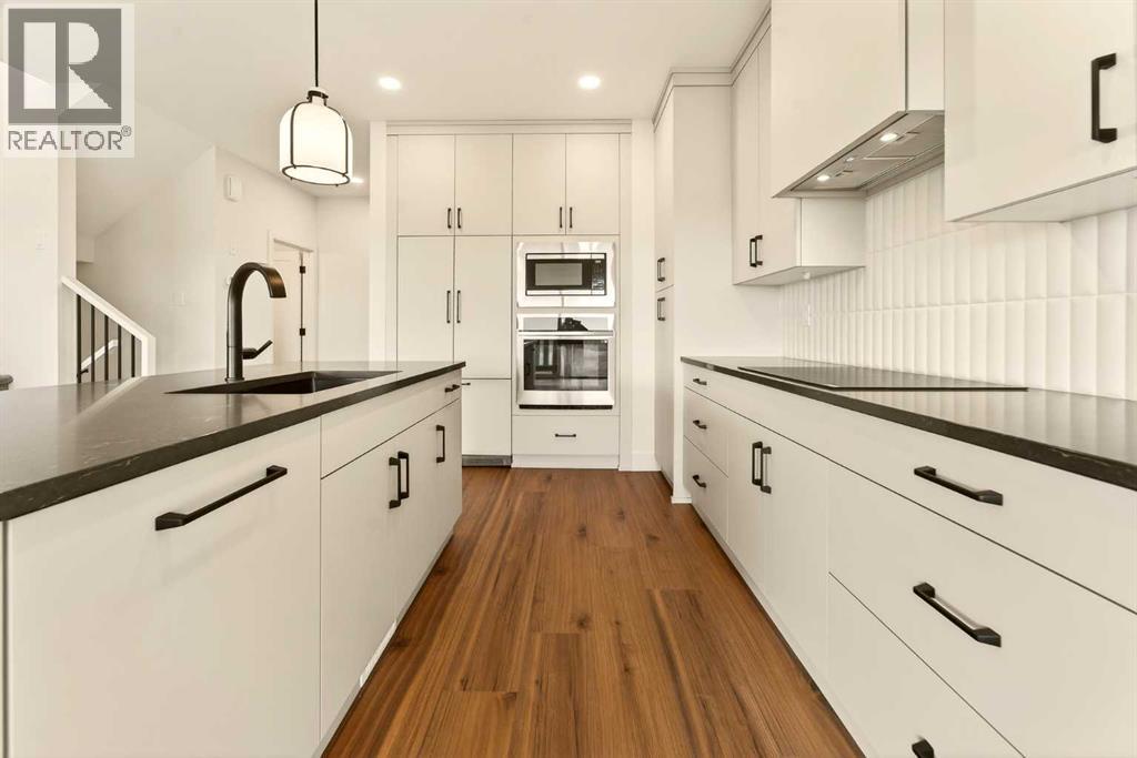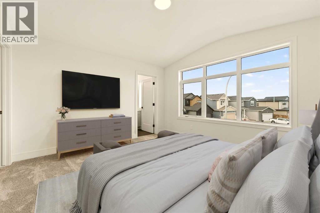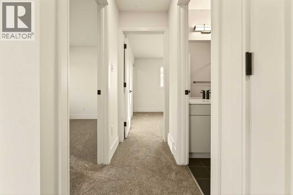Welcome to a brand new Christensen floor plan by Stranville Living Master Builder, tucked away on a quiet cul-de-sac in the desirable Country Meadows community and set on a rare pie-shaped lot with convenient alley access. This is the kind of location buyers wait for—low traffic, extra backyard space, and a layout that actually makes sense for everyday living.The main floor is bright, open, and intentionally designed to feel both elevated and functional, anchored by a standout kitchen that truly sets the tone for the home. Extended cabinetry runs all the way to the ceiling, paired with quartz countertops and a sleek induction cooktop, while the built-in oven and microwave keep everything clean and streamlined. The panelled Fisher & Paykel fridge and matching panelled dishwasher blend seamlessly into the cabinetry, giving the kitchen a polished, high-end look without feeling overdone. Just off the kitchen, the dining and living areas flow effortlessly together and open to the spacious backyard through sliding glass doors, perfectly positioned for a future deck and indoor-outdoor entertaining.Upstairs, the layout continues to impress with a generous bonus room that works equally well as a second living space, media room, or kids’ hangout. Two large bedrooms each feature their own walk-in closet, making them ideal for family or guests, and are complemented by a well-appointed four-piece bathroom. The primary bedroom checks every box, offering plenty of space for a king-sized bed, a walk-in closet, and a four-piece ensuite highlighted by a tiled walk-in shower that feels both modern and timeless.Thoughtfully designed, beautifully finished, and located in a quiet pocket of Country Meadows, this home delivers the comfort of a new build with the layout and features that everyone is looking for. Included in the price is a 10 year new home warranty and GST! Photos are virtually staged. (id:28267)