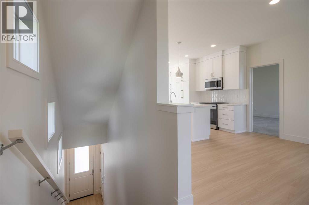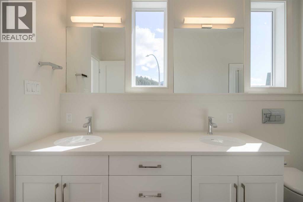 Welcome to the Aspen model by Stranville Living Master Builder, a brand new, thoughtfully designed home located in the heart of the Rocky Mountains in beautiful Coleman, Alberta. This is not your typical floor plan—it’s a mountain-inspired design that fully embraces its surroundings and delivers a layout that feels both functional and genuinely unique.One of the standout features of this home is the main-floor bedroom complete with a private balcony, offering peaceful and picturesque Rocky Mountain views that feel tucked away yet always within sight. Also on the main level is the oversized double attached garage, which opens out to its own private patio—perfect for hosting, relaxing, or turning garage nights into full-blown gatherings.The second level serves as the primary living space and is bright, open, and designed to impress. Tall ceilings and oversized windows flood the space with natural light while framing the mountain backdrop. The kitchen sits perfectly between the living room and dining area, creating a natural separation without sacrificing openness. Finished with quartz countertops, an induction cooktop, and Stranville’s signature panelled Fisher & Paykel fridge and dishwasher, the kitchen blends high-end style with everyday practicality.Just off the living room is the primary bedroom, featuring vaulted ceilings and a striking window that captures the mountain views beautifully. The walk-in closet connects directly to the ensuite and also houses the main-floor laundry for added convenience. The ensuite itself is finished with dual vanities, a walk-in shower, and an upgraded wall-mounted toilet, delivering a clean, modern feel.The upper level completes the home with two additional bedrooms, one offering a walk-in closet and the other a spacious layout with large windows. A centrally located four-piece bathroom serves this level, making it ideal for family, guests, or flexible living arrangements.This is mountain living done right—modern design, elevated finishes, and a layout that truly takes advantage of its Rocky Mountain setting. GST IS INCLUDED IN THE LIST PRICE, As well as a 10 year new home warranty. Photos are virtually staged. (id:28267)