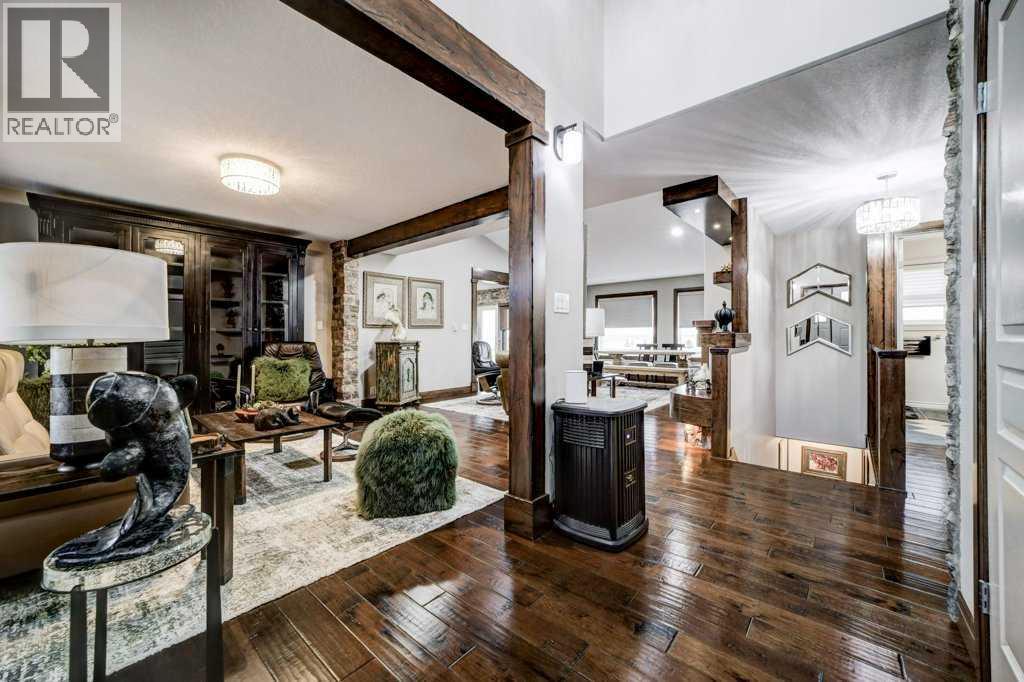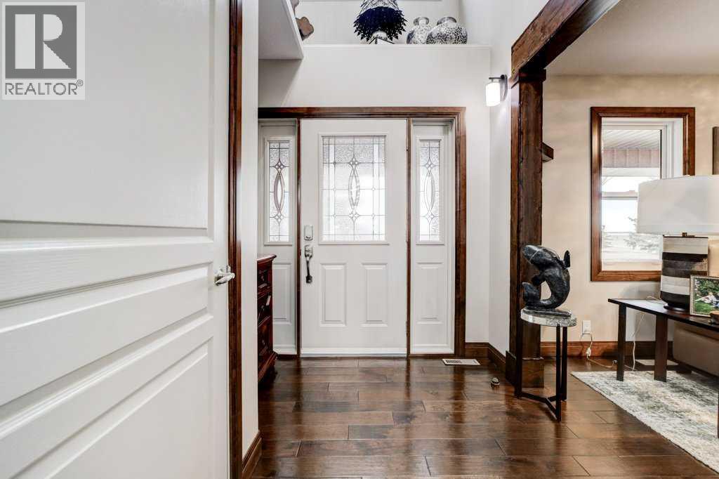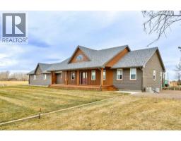 Elegantly updated and immaculately maintained, this beautifully designed bungalow offers refined acreage living on over 14 acres, just minutes south of Taber. From the moment you step inside, it’s clear this home has been thoughtfully curated by a seller with a true eye for design. Skylights flood the space with natural light, highlighting vaulted ceilings, rich hardwood and tile flooring, and striking architectural details including brick feature walls and a cozy gas fireplace. The heart of the home is both functional and inviting. The kitchen features ample cabinets, a walk in pantry and a space for a smaller, intimate dining table, perfect for everyday meals, while just around the corner, a dedicated dining area flows seamlessly into the main living room, ideal for hosting family and friends. A second sitting room provides an additional space to relax, visit, or unwind, creating a layout that feels open yet intentionally defined. Down the hall, you’ll find two comfortable bedrooms, a beautifully finished 4pc main bathroom, and a generous primary suite complete with a 4pc en-suite that includes a soaker tub. Main floor laundry add to the home’s everyday convenience. The basement is currently undeveloped, offering a blank canvas with excellent potential for future development. Outside, the property continues to impress. The yard is exceptionally well landscaped with exposed and stamped aggregate concrete, split rock accents, and a cedar deck—ideal for enjoying the peaceful surroundings. The attached oversized garage is heated with radiant heat, and multiple outbuildings, previously used for horses, offer versatility for hobbyists, storage, or future use. Adding significant value, the acreage includes services for a second dwelling or mother in law suite, complete with its own cistern and septic system, as well as extra acres for potential leasing and irrigation for the yard, enhancing both the functionality and long term potential of this exceptional rural property. There is also potential to subdivide if you desire fewer acres. (id:28267)